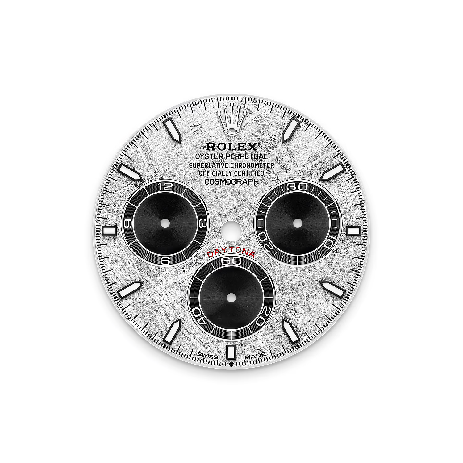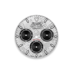 يُعَد هذا الإصدار من ساعة كوزموغراف دايتونا الوحيد الذي جهّزته رولكس بمينا حجر النيزك. يُستخرج حجر النيزك من قلب كويكب أو حتى من كوكب بعدما انفجر وانتشرت المواد عبر النظام الشمسي إلى أن أتى بها القدر إلى محور دوران كوكبنا واقتادتها الجاذبية إلى الأرض.