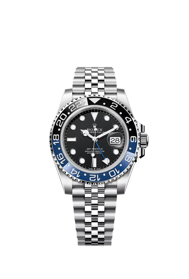 تتميز ساعة أويستر بربتشوال جي إم تي ماستر II المصنوعة من فولاذ أويستر ستيل بمينا أسود وبسوار جوبيلي (Jubilee).