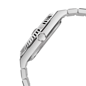 بالإضافة إلى ذلك، تم شطف الحواف العليا للوصلات الخارجية للسوار، على غرار تلك الخاصة بالعلبة الوسطى، وصقل الحواف الناتجة من ذلك، ما أدى إلى شعاع غير منقطع من الضوء. وجُهز السوار بإبزيم كراون كلاسب المخفي والقابل للطي.