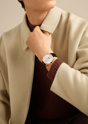 • 双面棒状时针和分针,18K金材质