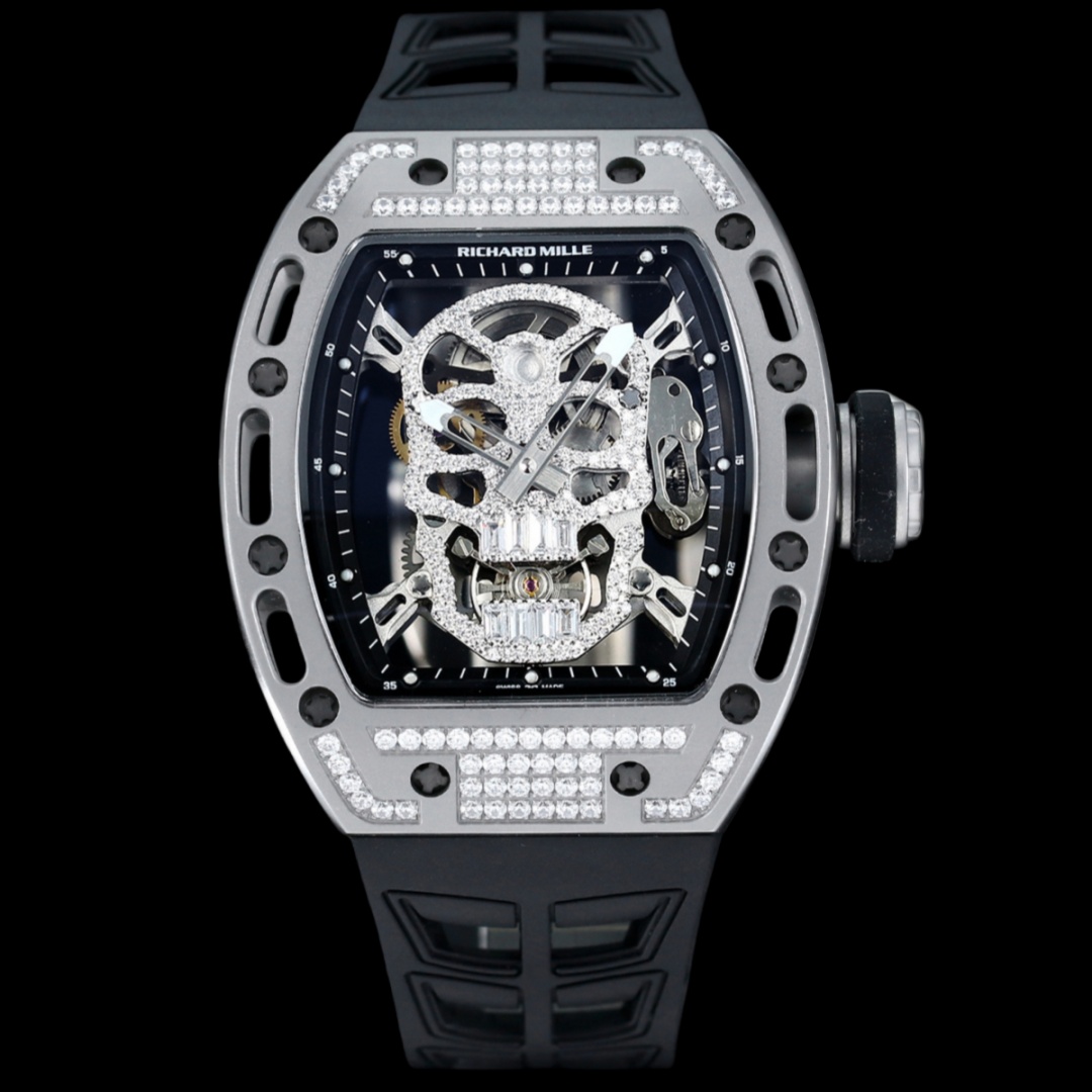 سلسلة RM052، أحدث نسخة مطورة من سلسلة Ghost Head، سلسلة Skull، علبة من الفولاذ المصقول، مزودة بحركة ميكانيكية أصلية مستوردة، مما يسلط الضوء على النمط الرياضي لهذه الساعة. من خلال المرآة المضادة للوهج، يمكنك رؤية الحركة المجوفة المعلقة. تصميم الجمجمة الجريء والفريد هو الاستبداد ولافت للنظر. لقد استحوذت بنجاح على قلوب العديد من عشاق الساعات. تخلق صورة الجمجمة عالمًا للساعة ليس جامدًا بالنسبة للتيار السائد.
