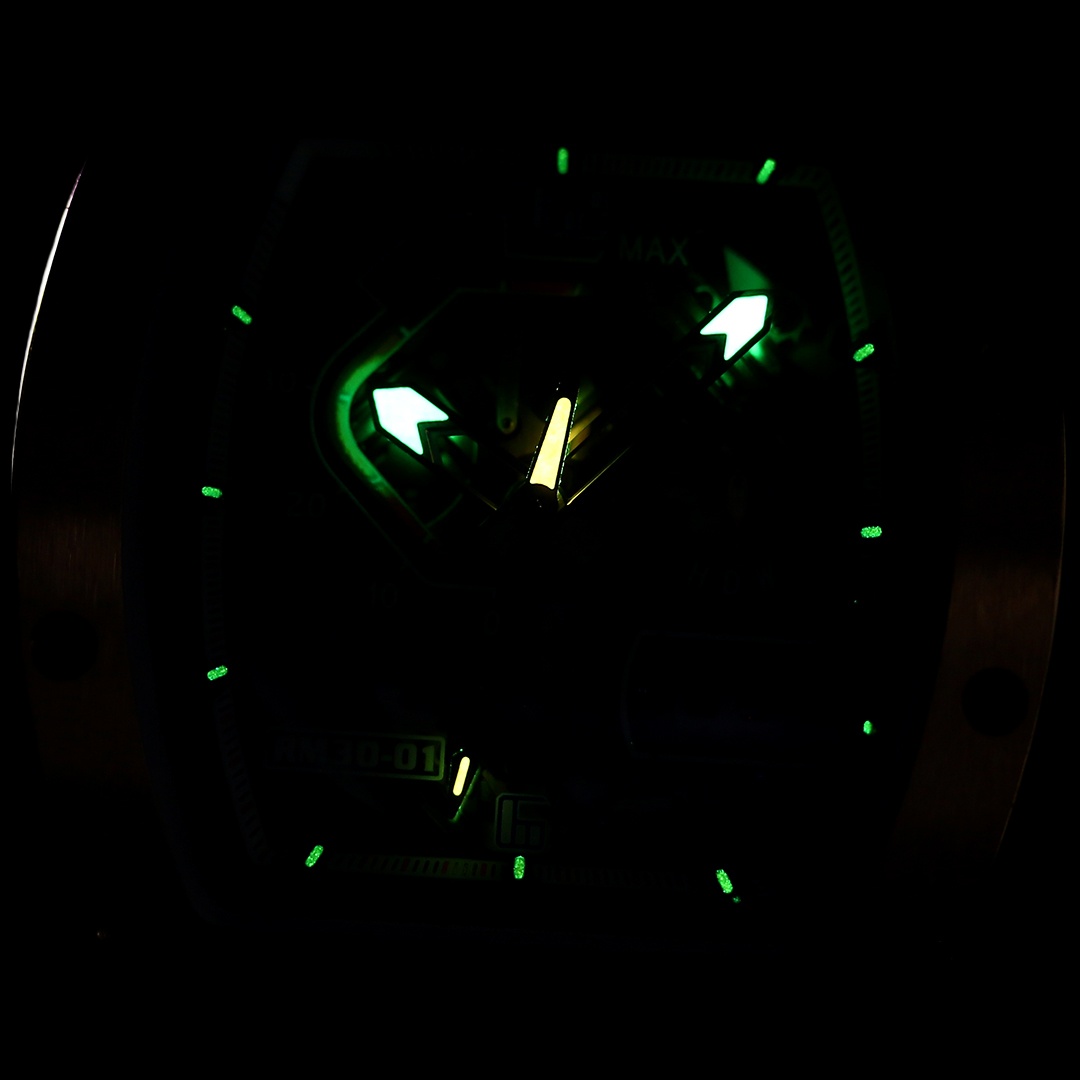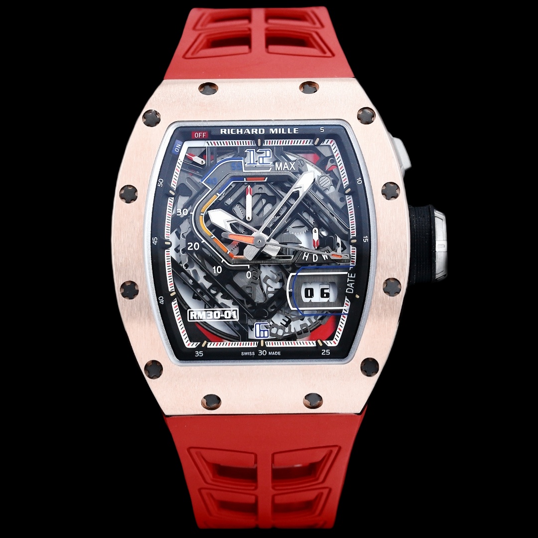 سلسلة RM30-01 حركة ميكانيكية أوتوماتيكية بالكامل 40 × 50 × 16 مم مرآة الضوء الأزرق قرص مجوف فريد من نوعه قرص مضيء عقارب مطاطية أو حزام من النايلون مشبك قابل للطي اتبع القواعد؟ الحفاظ على الانظار؟ لم تكن هذه أبدًا رؤية ريتشارد ميل للعالم