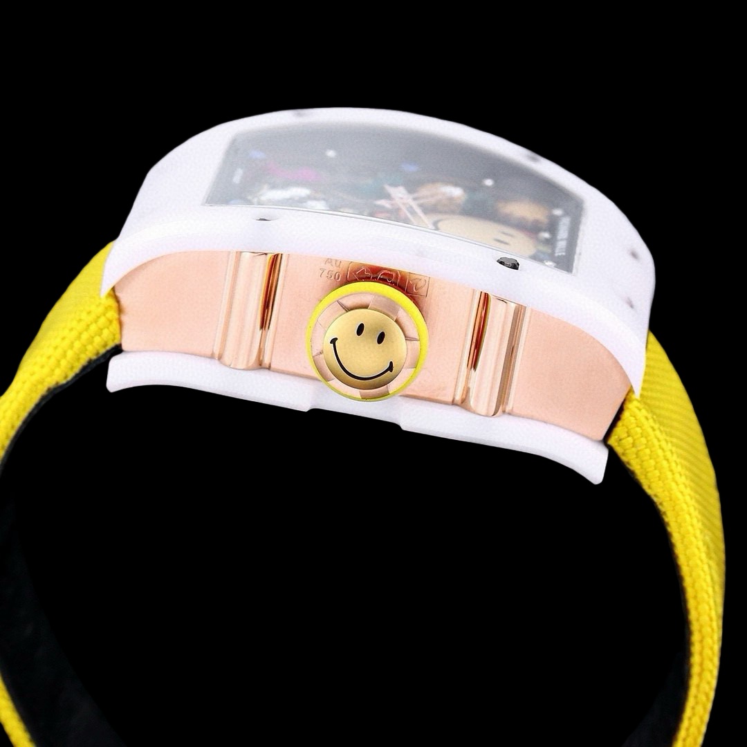 تجسّد ساعة RM 88 Smiley ذاتية التعبئة ذات دولاب الموازنة أسلوبًا مرحًا. بعد ثلاث سنوات من البحث والتطوير، ولدت ساعة ذات حرفية وابتكار غير عاديين، ساعة توربيون ذاتية الحركة ذات 88 حركة مستقلة وكل عنصر زخرفي تتضمنه يأتي من العالم المبتسم المبهج: الزهور المتفتحة، والشمس الدافئة، والأناناس اللذيذة، والصبار الذي ينمو بقوة، وطيور النحام الوردي، وقوس قزح ذو الألوان الزاهية… تمامًا كما توحي كؤوس النبيذ تحت أضواء النيون المتشابكة، يجب الاستمتاع بكوكتيل بهيج في رشفة واحدة في كل مرة. الوقت. الساعة التي تشبه الحلم لها أيضًا سعر يشبه الحلم لا يمكن تحقيقه. ويبلغ سعر هذه الساعة قبل الضريبة، والذي يقتصر على 50 قطعة في العالم، 1.2 مليون فرنك سويسري. بضرب سعر الصرف 7.25 ثم تضمين الضريبة، يبلغ سعر RM 88 المبتسم ما يقرب من 10 ملايين يوان. لا يهم إذا كنت لا تستطيع تحمله. إنها فقط لمشاهدة الإثارة. ابتسم مثل مبتسم وسوف تشرق الشمس كل يوم.