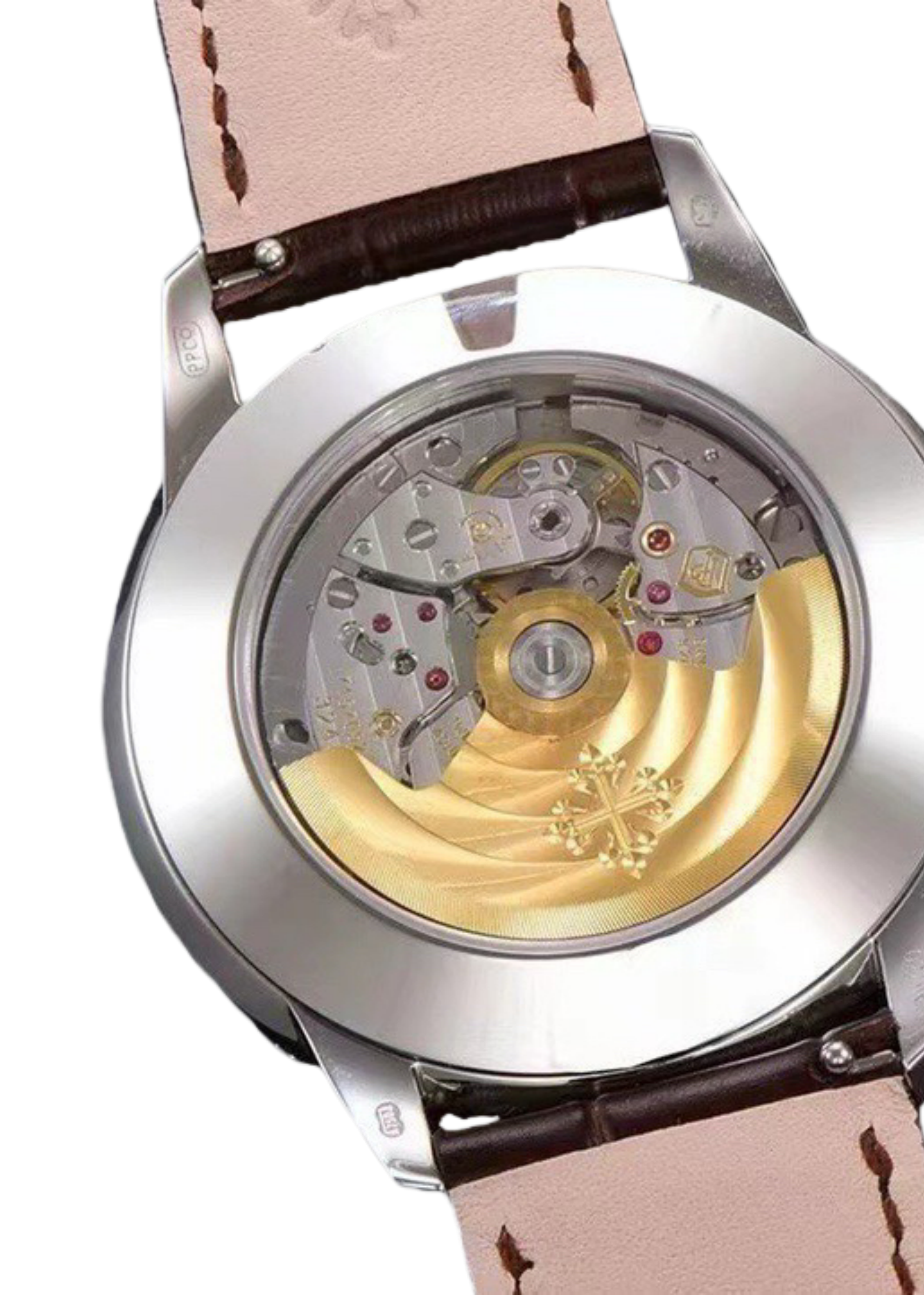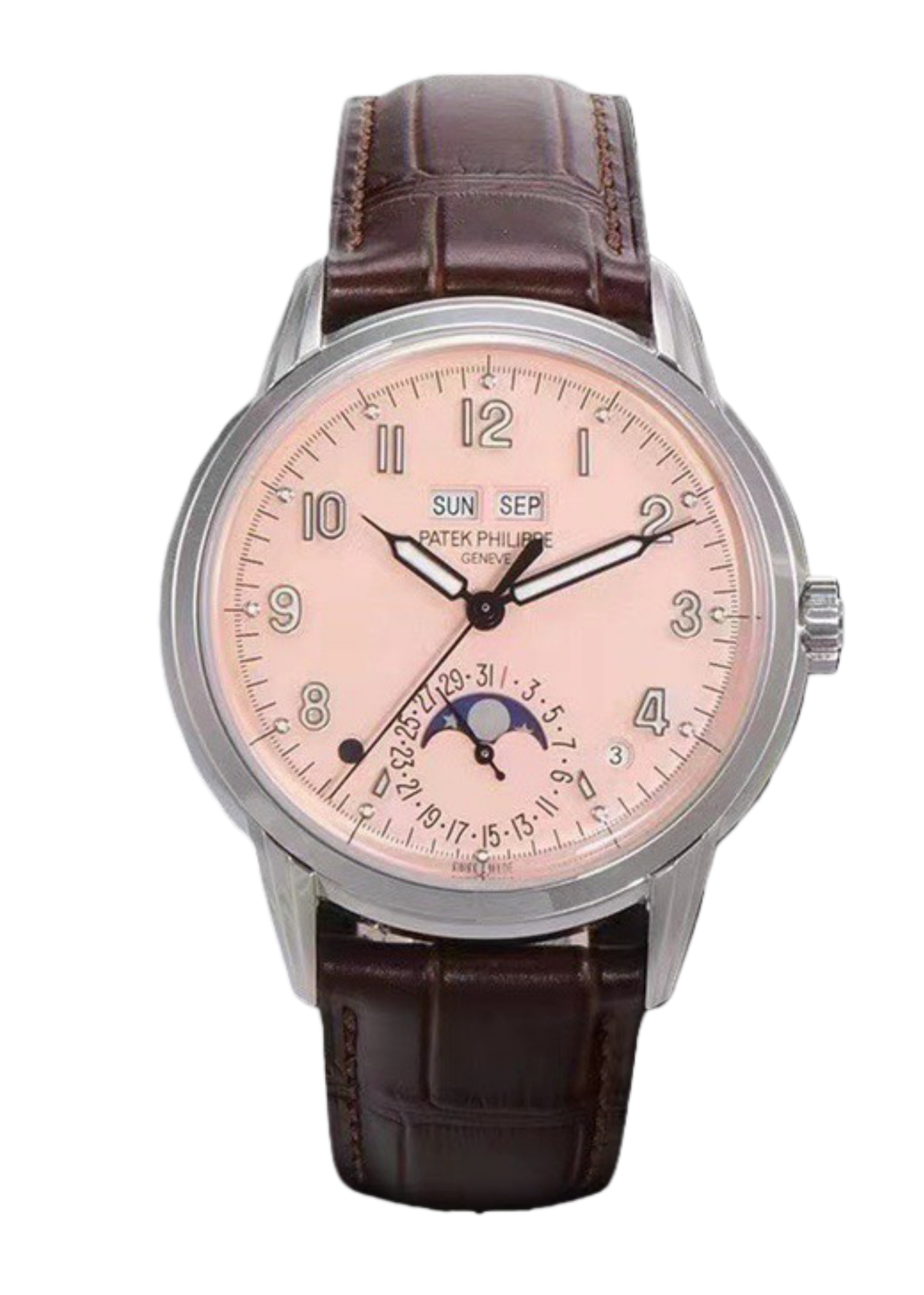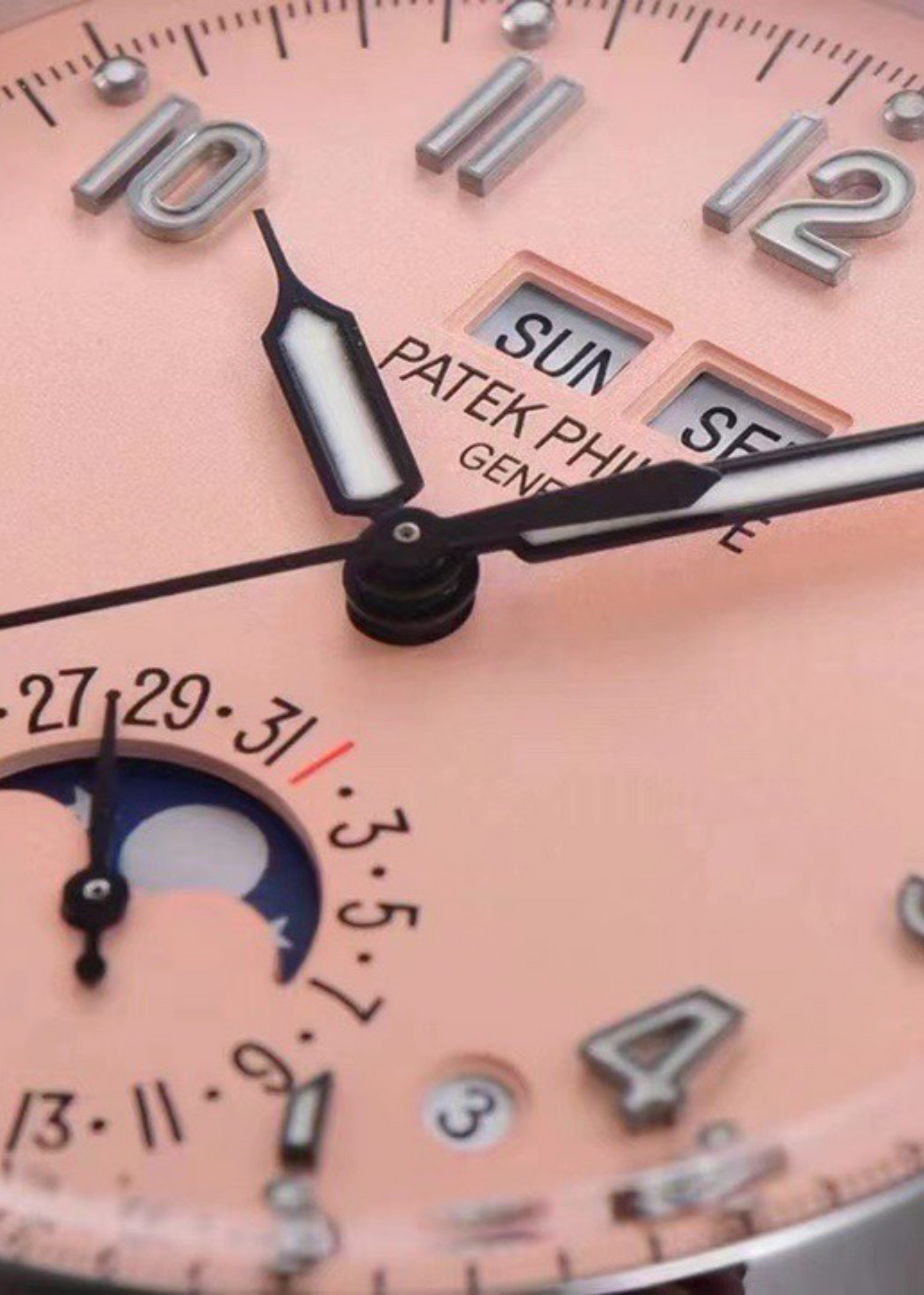 يبلغ قطر ساعة Patek Philippe 5320G-001 فائقة التعقيد 40 ملم وعلبة مزدوجة الطبقات من الفولاذ المقاوم للصدأ مختومة في قطعة واحدة. إنه يشيد بلغة التصميم الكلاسيكية. يخلق القرص الكريمي جوًا قديمًا. تم نقش حافة الميناء بمقياس الدقائق والثانية، مع أرقام عربية ذهبية ومسامير محدبة بمقياس خمس دقائق، مما يجعلها ثلاثية الأبعاد أكثر. تعتمد عقارب الساعة والدقائق على تصميم باتون بطرف طويل مدبب. هذا الشكل المميز يردد صدى أيدي المرجع. 1463 كرونوغراف في الخمسينيات. موضع الساعة 6 على القرص هو عرض مرحلة القمر والاتصال الهاتفي بالتاريخ. يوجد مؤشر للسنة الكبيسة على يمين التاريخ، ومؤشر ليلا ونهارا على اليسار. جميع علامات التقويم الدائم في حالة جيدة ويمكن قراءتها في لمحة. وهي مجهزة بحركة ذاتية الملء 324 S Q، وهي نسخة ذات غلاف مقوى من الحركة الأسطورية ذاتية الملء 324. جسور الخشب الرقائقي للحركة مشطوفة والحواف مصقولة بعناية. تم تزيين الخشب الرقائقي الرئيسي بأنماط قشور السمك، في حين تم تزيين الخشب الرقائقي بزخارف كوت دو جنيف. سطح الخشب الرقائقي مطلي بالذهب ومنقوش. الأخاديد اللولبية مصقولة ومشطوبة، وحتى الثقوب المحفورة مصقولة أيضًا. ويقترن بحزام من جلد البقر بلون الشوكولاتة البني، مما يبرز الجو القديم. مليئة بالنكهة الكلاسيكية