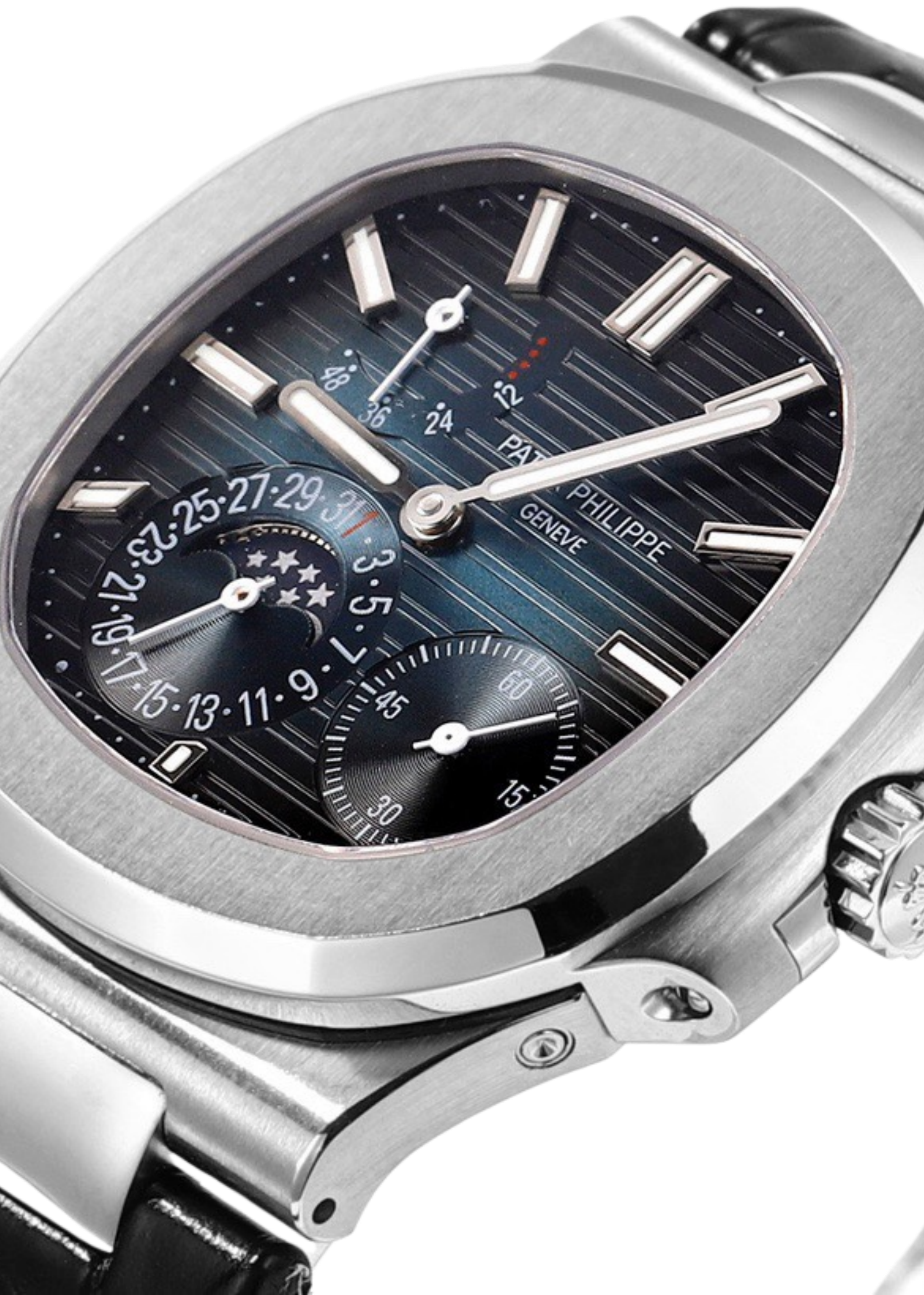 ظهور ساعة Patek Philippe 5712GR, 5724 “King of Steels” لأول مرة بشكل صادم! كمبيوتر سوبر الكل في واحد Cal.240 PS IRM C LU. هناك 265 جزء حركة في المجموع. جواهر الحركة من نفس اللون ودم الحمام الأصلي. تحتوي على نابض شعري مسطح وعجلة توازن جيروماكس مع 21600 اهتزاز في الساعة، وهي مستقرة وخالية من الأخطاء. علبة رفيعة للغاية، بسُمك 0.95 سم، وهي الأولى في فئتها في السوق، والثانية فقط بعد السُمك الأصلي، وحزام من الفولاذ المقاوم للصدأ تم تعديله حديثًا، وتم تطوير الجزء المفصلي بناءً على تفكيك حزام Patek Philippe Nautilus الحقيقي من الفولاذ المقاوم للصدأ، وله تأثير ملائم متسق.