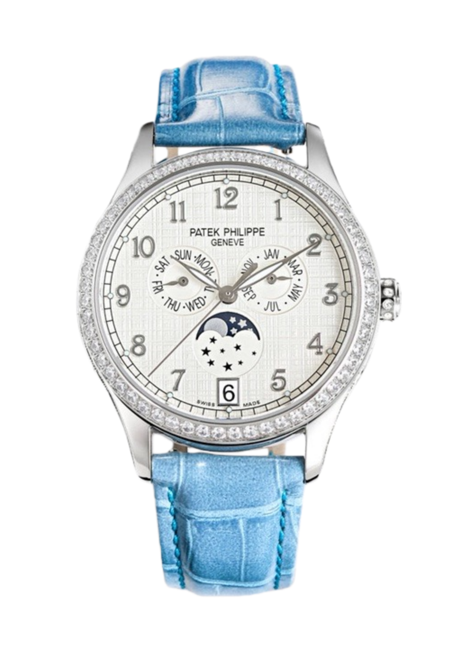 سلسلة الساعات ذات الوظائف المعقدة من Patek Philippe 4947R4947G و4948R4948G تظهر لأول مرة! تجمع ساعة التقويم السنوي ومرحلة القمر للسيدات بين التقويم السنوي العملي ومرحلة القمر الأنيقة، وهي مزينة بعلبة مرصعة بالألماس، تجمع بين البريق الفاخر على المعصم والأداء الممتاز. إنها كلاسيكية وعصرية وجميلة بشكل لا يضاهى. يمكن لجهاز عرض التقويم السنوي الفريد عرض يوم الأسبوع والتاريخ والشهر، ولا يلزم إجراء عملية الضبط إلا مرة واحدة في السنة، مما يوفر راحة كبيرة، مما يجعل هذا النوع من الساعات أحد النماذج الرئيسية الشهيرة لساعات العلامة التجارية. قطر الساعة 38 ملم. بعد التلميع والتنقيح الدقيق، يظهر خطوطًا ناعمة وأقواسًا كاملة. الجزء العلوي من التاج مصقول بعناية لتعزيز المظهر البصري والملمس. تم نقش شعار Patek Philippe الكلاسيكي “Calatrava cross star” عليه، مما يوضح الجمال المميز للعلامة التجارية. تم تزيين جانب التاج بدائرة من الماس، وهي مطابقة تمامًا للعلبة وتضيف إلى المظهر العام. ميناء عرق اللؤلؤ، الدافئ مثل اليشم، مرصع بأرقام عربية ذهبية ثلاثية الأبعاد، تمتزج مع العقارب الثلاثة المركزية الذهبية، مما يجعل مؤشر الوقت واضحًا وبديهيًا. بالإضافة إلى ذلك، يوجد قرص مؤشر اليوم عند موضع الساعة 9 وميناء مؤشر الشهر عند موضع الساعة 3، وهما مدمجان مع نافذة عرض التاريخ ومرحلة القمر عند موضع الساعة 6، مما يوفر لمرتدي الساعة أداءً عمليًا على المعصم. إنها مجهزة بحركة Patek Philippe 324S QA LU ذاتية الملء وحاصلة على شهادة Patek Philippe Seal (PP) الحصرية للعلامة التجارية لضمان الأداء الممتاز. حزام من جلد البقر الإيطالي، مزين بخياطة يدوية، أنيق وواسع. مشبك دبوس أصلي مرصع بالألماس اللامع على طول الحافة، يتوافق مع العلبة المرصعة بالألماس. إذا كنت تحب Patek Philippe، فقد تحب الساعات حقًا، فقط للذهاب إلى أجمل أعماق أحلامك.