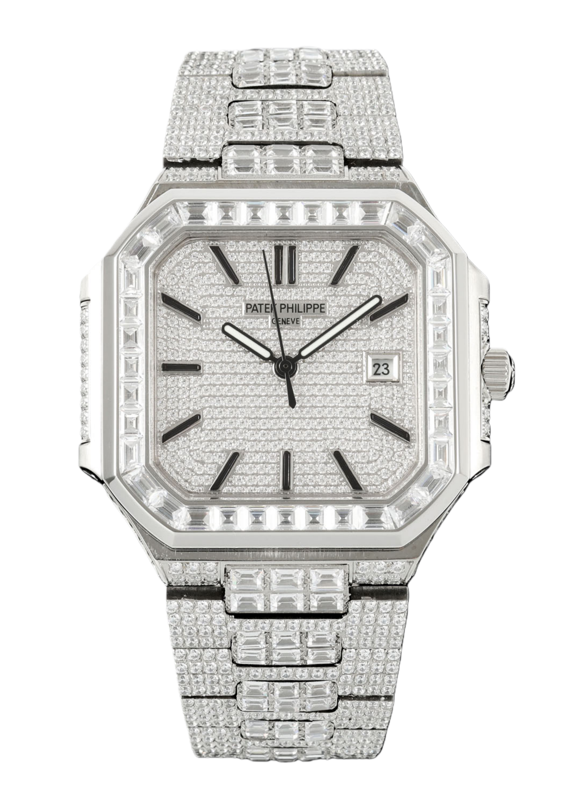 المزيج المثالي من الفولاذ المقاوم للصدأ والألماس في سلسلة Patek Philippe CUBITUS 58211A-001 يجمع بذكاء بين الفخامة والرياضة. تم ترصيع قطع الماس الرائعة على العلبة، مما يعكس ضوءًا جميلاً. سطح المرآة مصنوع من زجاج كريستال الياقوت المقاوم للخدش والصدمات. توجد نافذة تقويم عند الساعة 3، بتصميم كلاسيكي ثلاثي الدبابيس، والذي لن يبدو معقدًا وزائدًا عن الحاجة. يتميز كل من المظهر والأداء بالدقة، ويتم التحكم في سمك رأس الساعة بشكل مثالي. تمت ترقية المجوهرات غير العادية المشهورة عالميًا للعلامة التجارية والتي تمت ترقيتها حديثًا بشكل مثالي مع النجوم. تتميز ساعة Patek Philippe الفاخرة هذه بتصميم فريد وساحر. إنه تسامي للحرفية المثالية ورمز لمكانة الأشخاص الناجحين.
