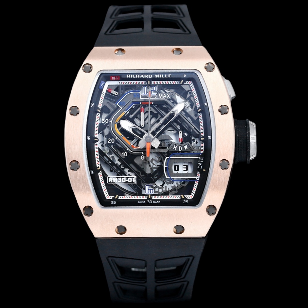 سلسلة RM30-01 حركة ميكانيكية أوتوماتيكية بالكامل 40 × 50 × 16 مم مرآة الضوء الأزرق قرص مجوف فريد من نوعه قرص مضيء عقارب مطاطية أو حزام من النايلون مشبك قابل للطي اتبع القواعد؟ الحفاظ على الانظار؟ لم تكن هذه أبدًا وجهة نظر ريتشارد ميل للعالم