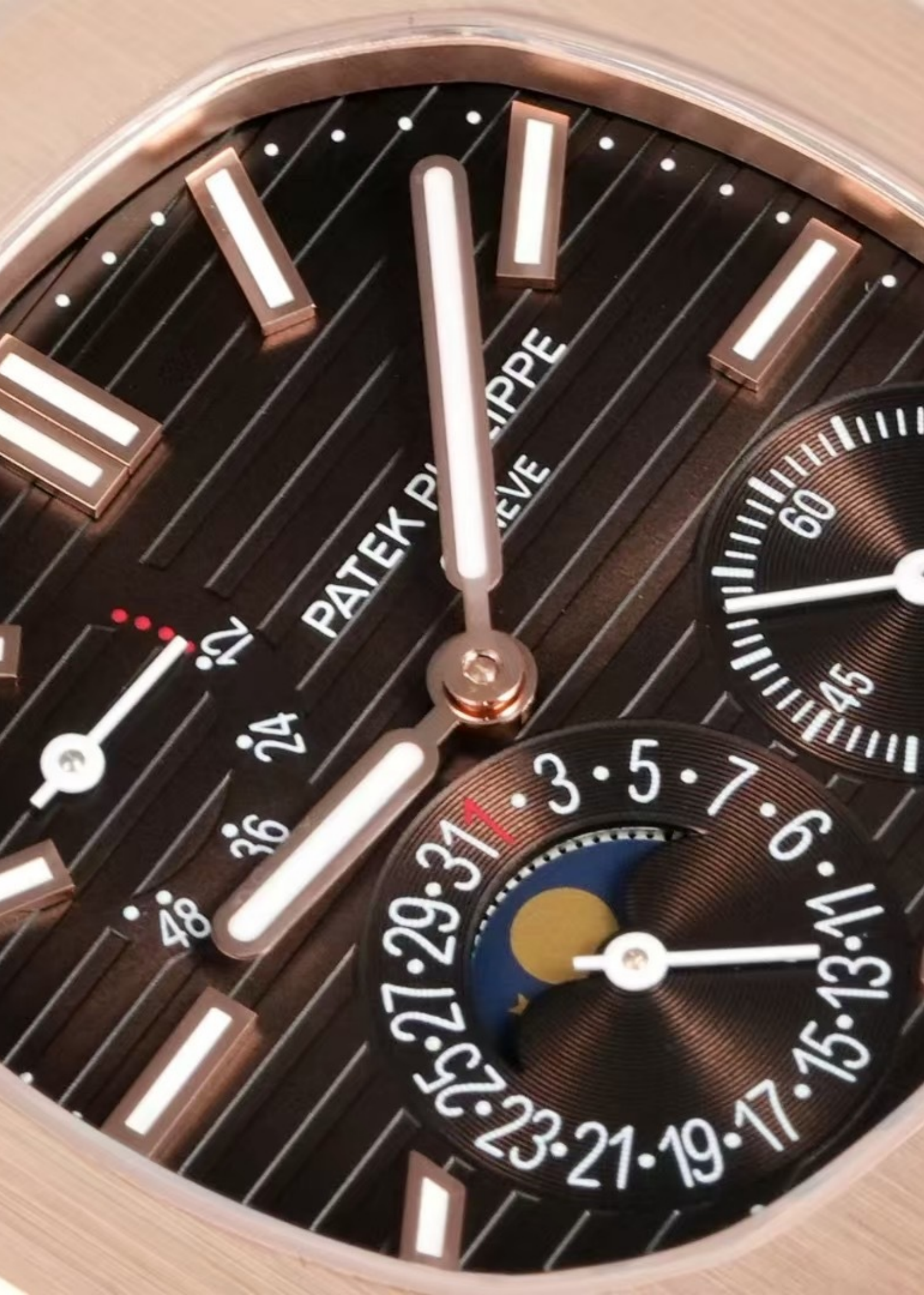 سلسلة Nautilus 5712GR 🎮 تعتمد حركة أوتوماتيكية من اللؤلؤ الحقيقي Cal.240 PS IRM C LU. تتكون الحركة بأكملها من 265 جزءًا، و21600 ذبذبة في الساعة، وخطأ ثابت قدره 0⃣. 🎮حجم العلبة 40 ملم. إنها تعتمد مزيجًا من عمليتين: الصنفرة الأمامية والتلميع الجانبي. لديها طبقات واضحة. العروات مشطوفة في نفس الوقت مع العروات الأصلية، مما يظهر براعة رائعة! حقق حلمك في أن تصبح “رئيسًا” 🎮S1 ساعة ميكانيكية متعددة الوظائف للرجال موصى بها بشكل رائع
